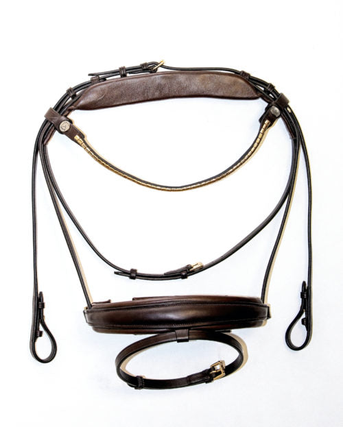Finesse bridles® (Danish product) has developed some elegant single bridles and double bridles with a unique headpiece that ensures the horse’s well-being during riding. The bridles are available with different widths and models of noseband.