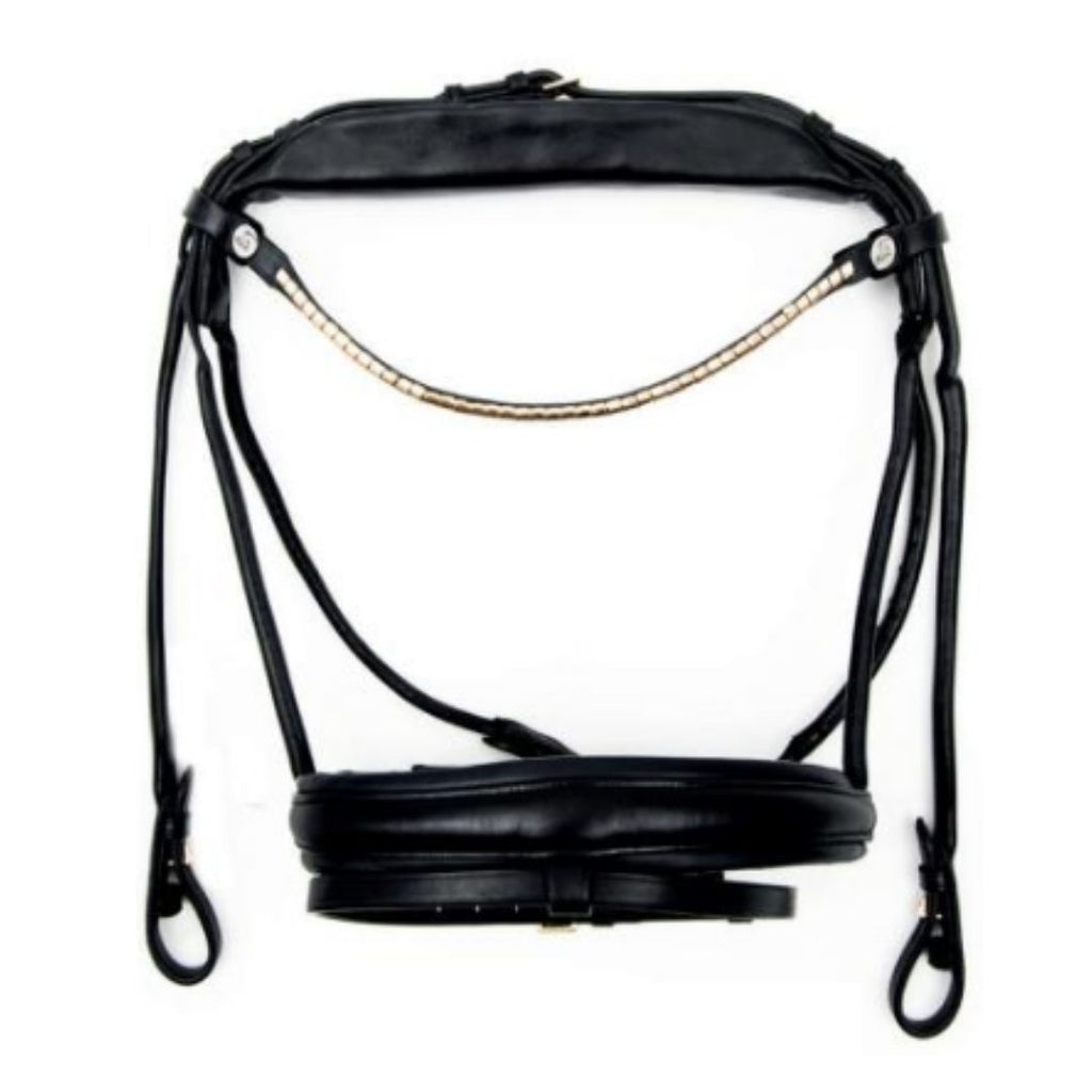 Finesse bridles® (Danish product) has developed some elegant single bridles and double bridles with a unique headpiece that ensures the horse’s well-being during riding. The bridles are round stitched and are available with different widths and models of noseband.