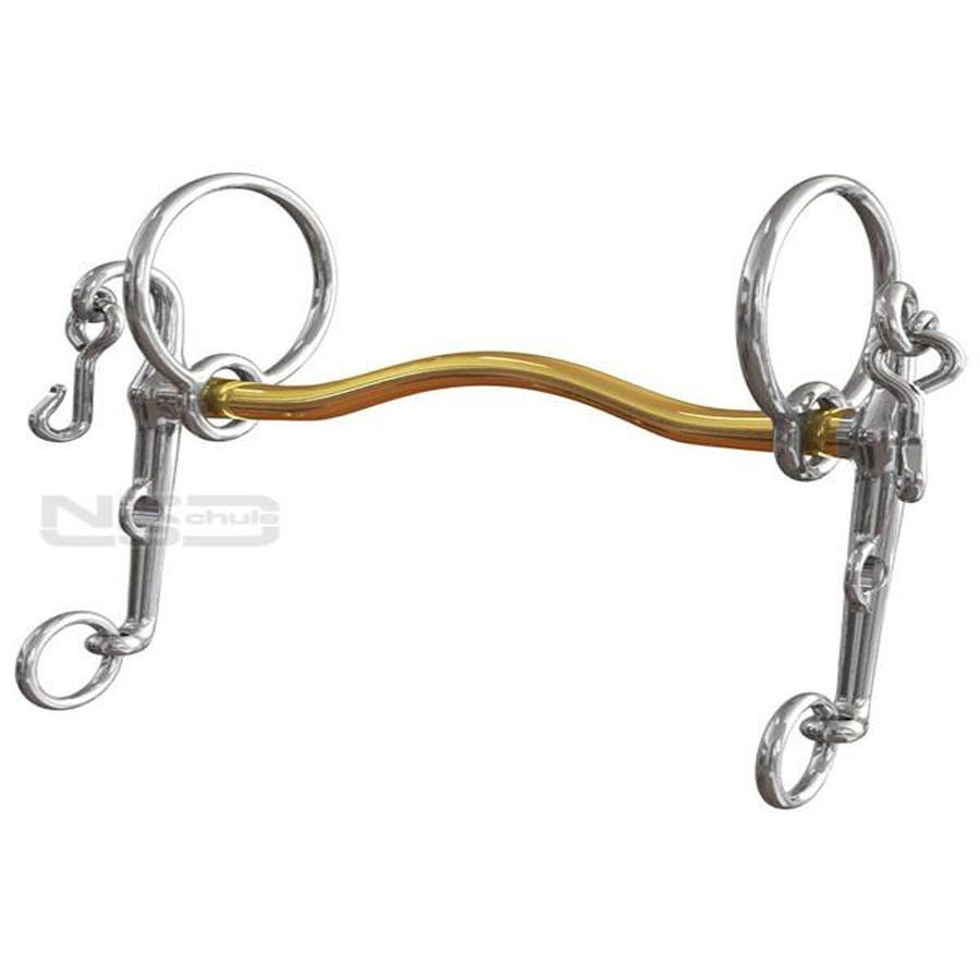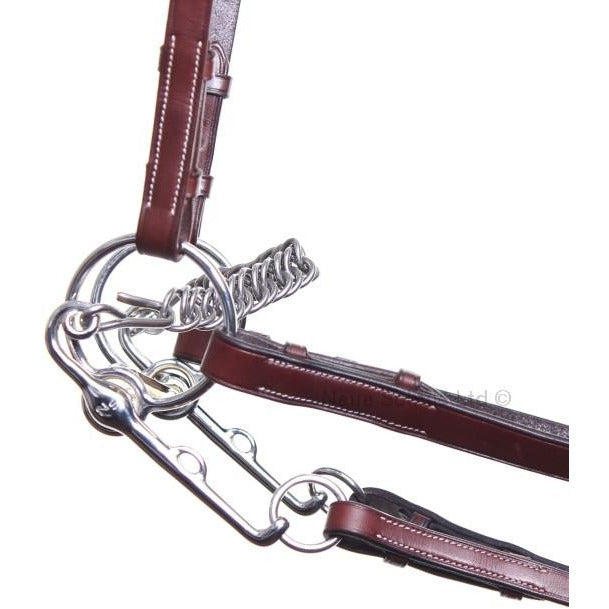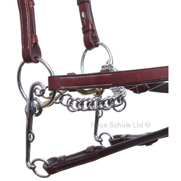 Very popular on show cobs that set, lean and go!! The only Neue Schule Pelham to remove poll pressure and increase curb action. This clever design is brilliant to combat strong, rude horses and/or those with a tendency to lean or snatch down. Lightness and outline is encouraged and any tendency to over bend is usually eradicated. Many horses do over bend in other Pelhams possibly due to the poll pressure. The combination of the mild Slimma mouthpiece and Swales cheek is excellent for use on a horse that fully understands the aids. Only recommended for riders with an independent seat and sympathetic hands.