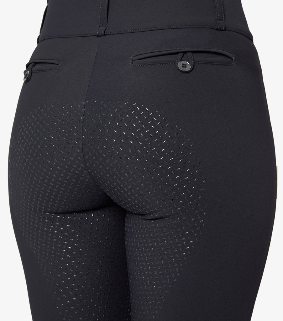 Crafted with our technically advanced four-way stretch fabric construction these breeches support and sculpt the figure whilst offering great breathability and moisture wicking properties in the saddle. Featuring a full seat of mid weight gel these breeches provide a more secure seat.