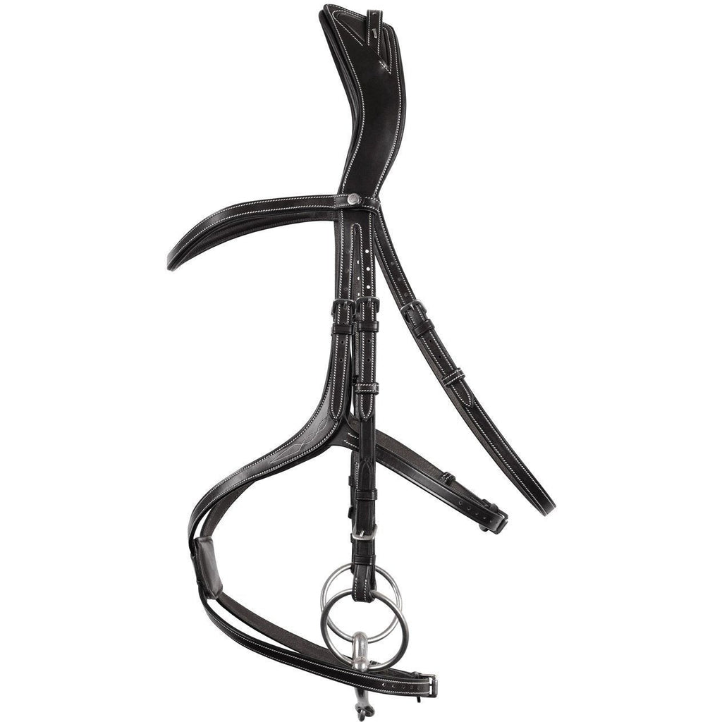 The bridle is ergonomically designed and made in brown Montar leather and with stainless steel buckles.