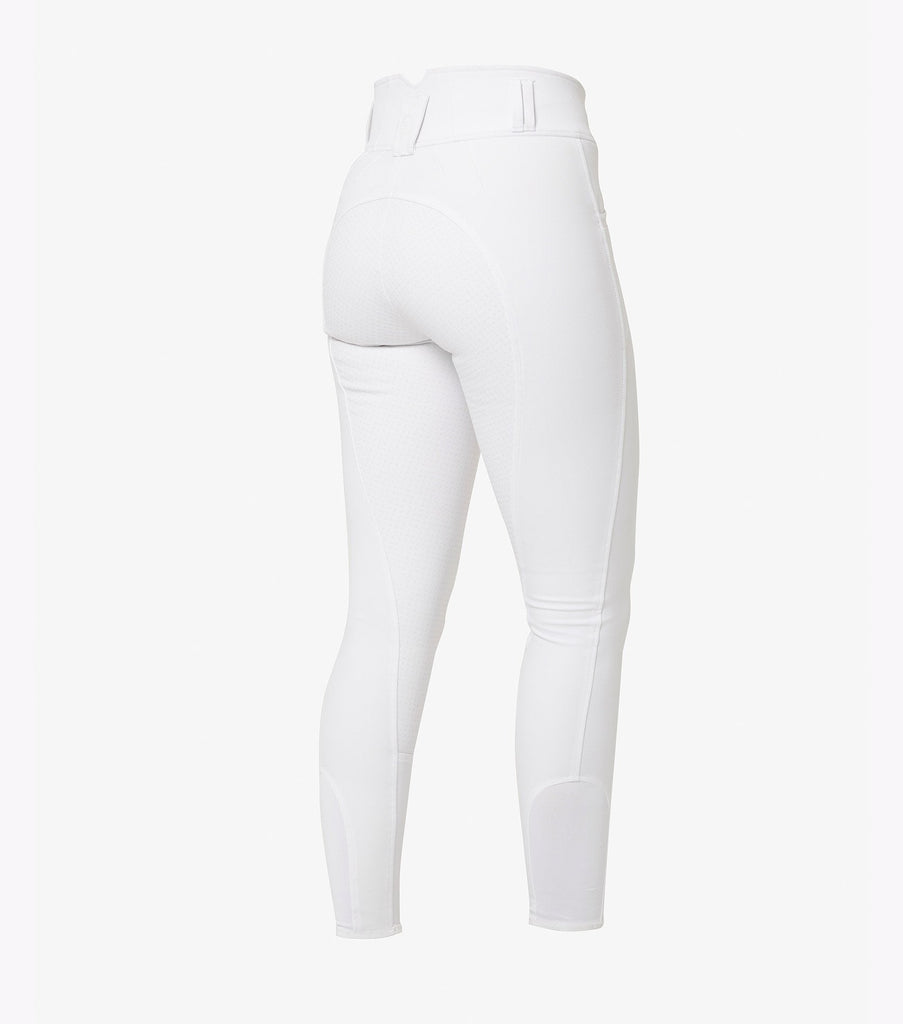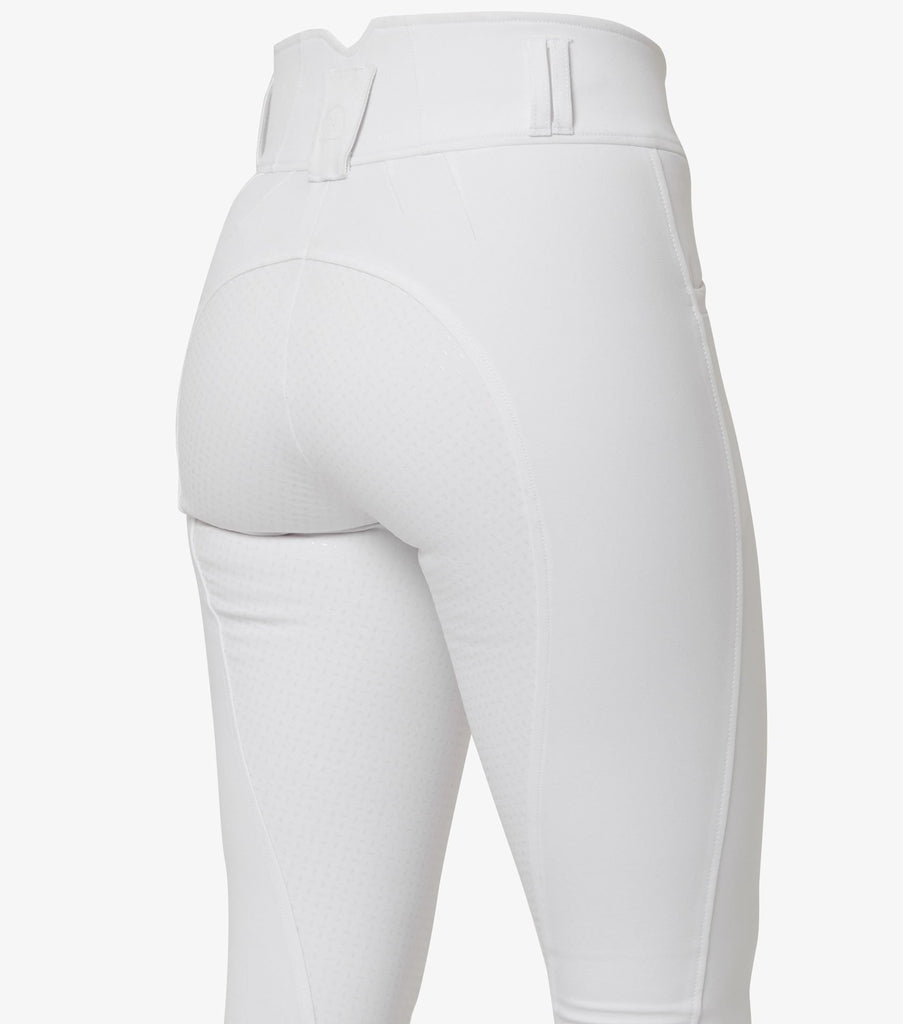Engineered with a traditional four-way stretch fabric these ladies breeches are designed to perform, featuring an elegantly shaped high waist band which provides support to the riders core and aids in correct positioning, finished with double slider fastening for a flattening silhouette.