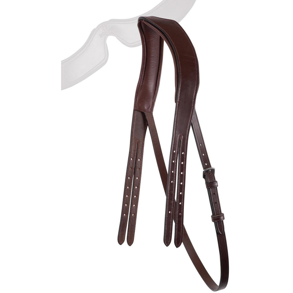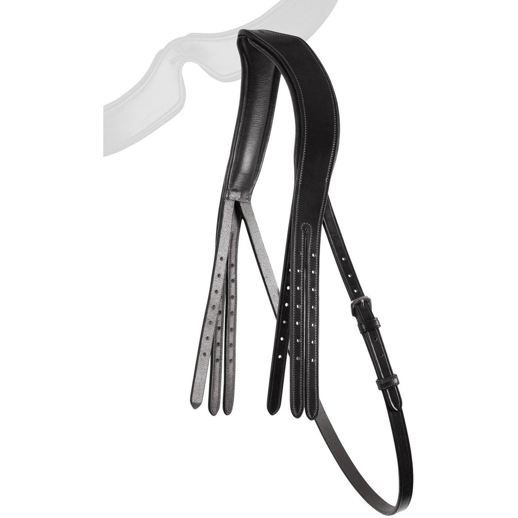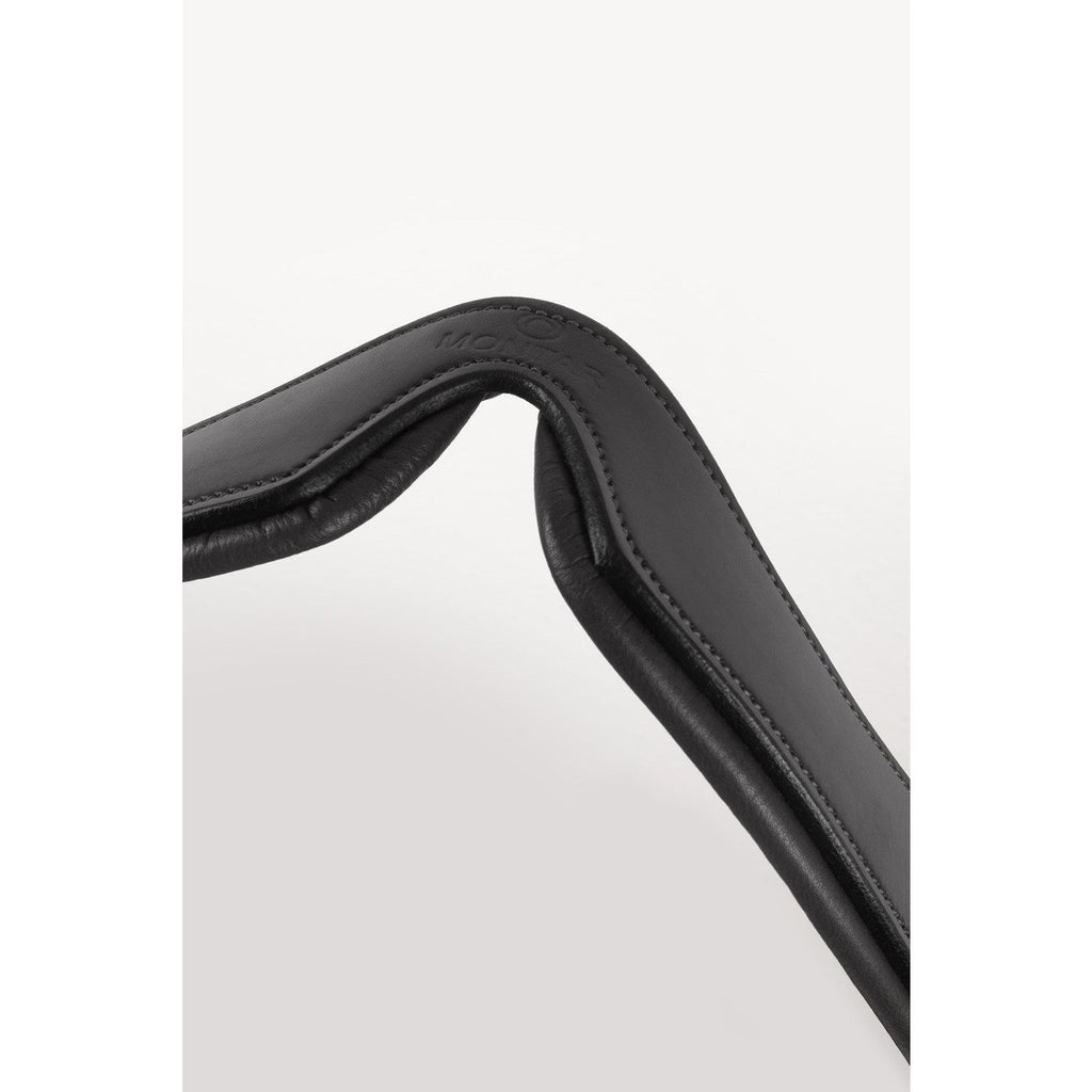 Montar classic crownpiece with throatlash and buckle in leather. The open headpiece adapts to the head shape of your horse. The headpiece is ergonomically designed to increase the comfort of the horse, while elegant black stitching and functional details ensure a modern style. Montar Headpieces are made of organic tanned leather without the use of chrome or chemicals, which reduce skin irritation and allergies for your horse. The neck of the horse is protected by the V-gap and the soft padding, which allow the horse to move freely. Fits perfectly to our Montar bridles.