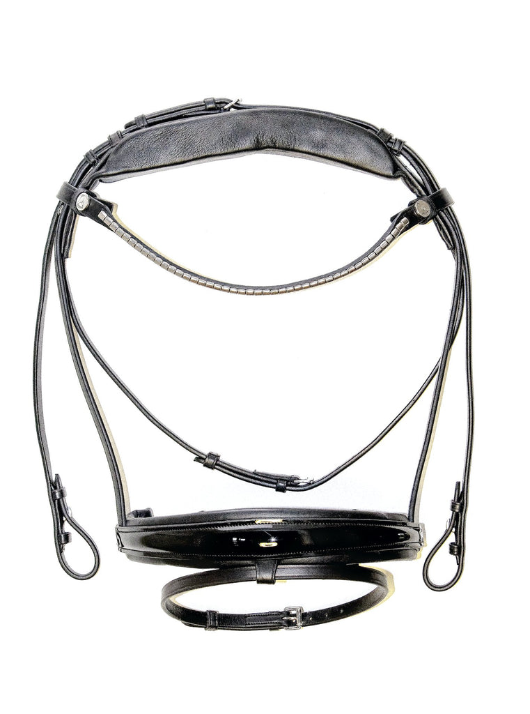 Finesse bridles® (Danish product) has developed some elegant single bridles and double bridles with a unique headpiece that ensures the horse’s well-being during riding. The bridles are available with different widths and models of noseband.